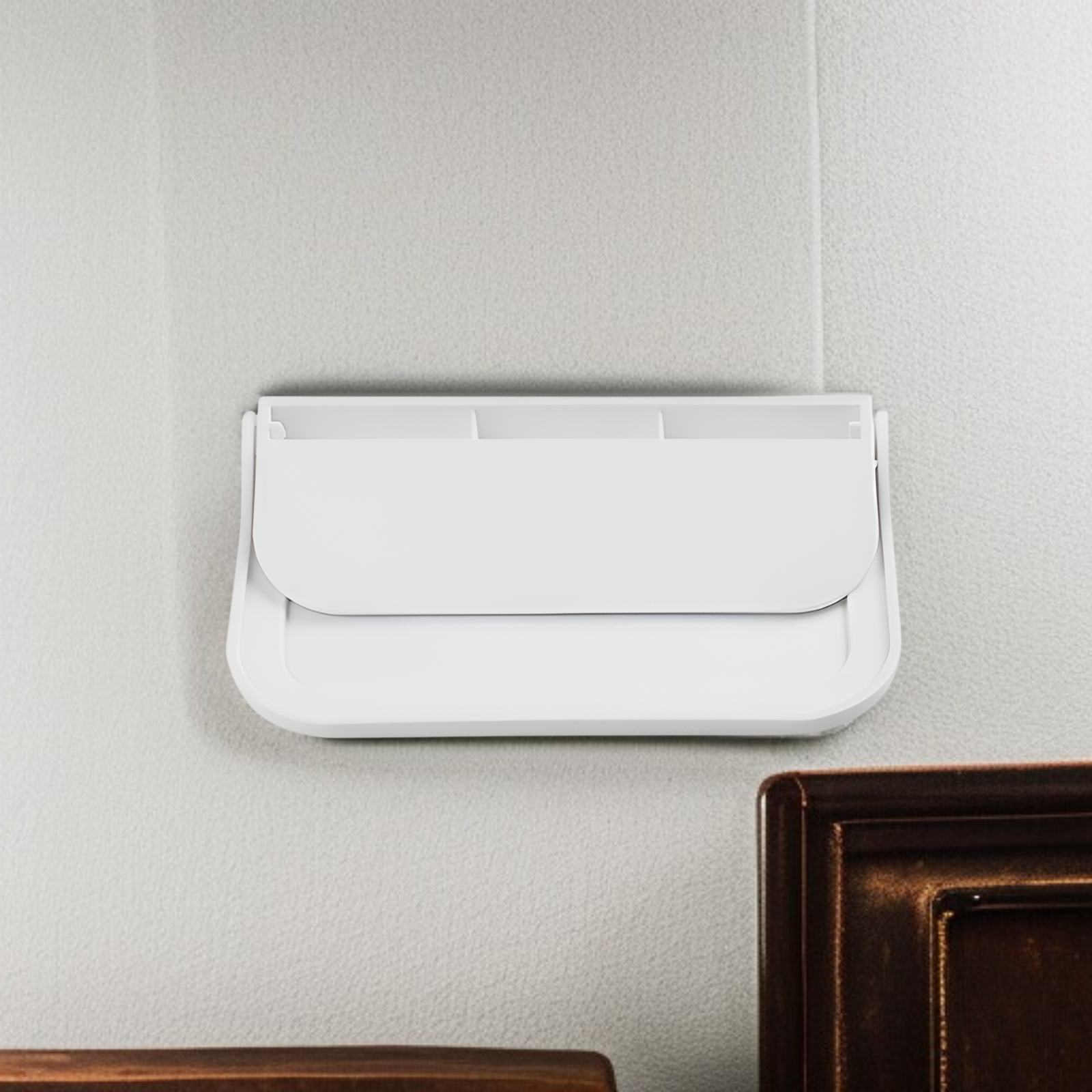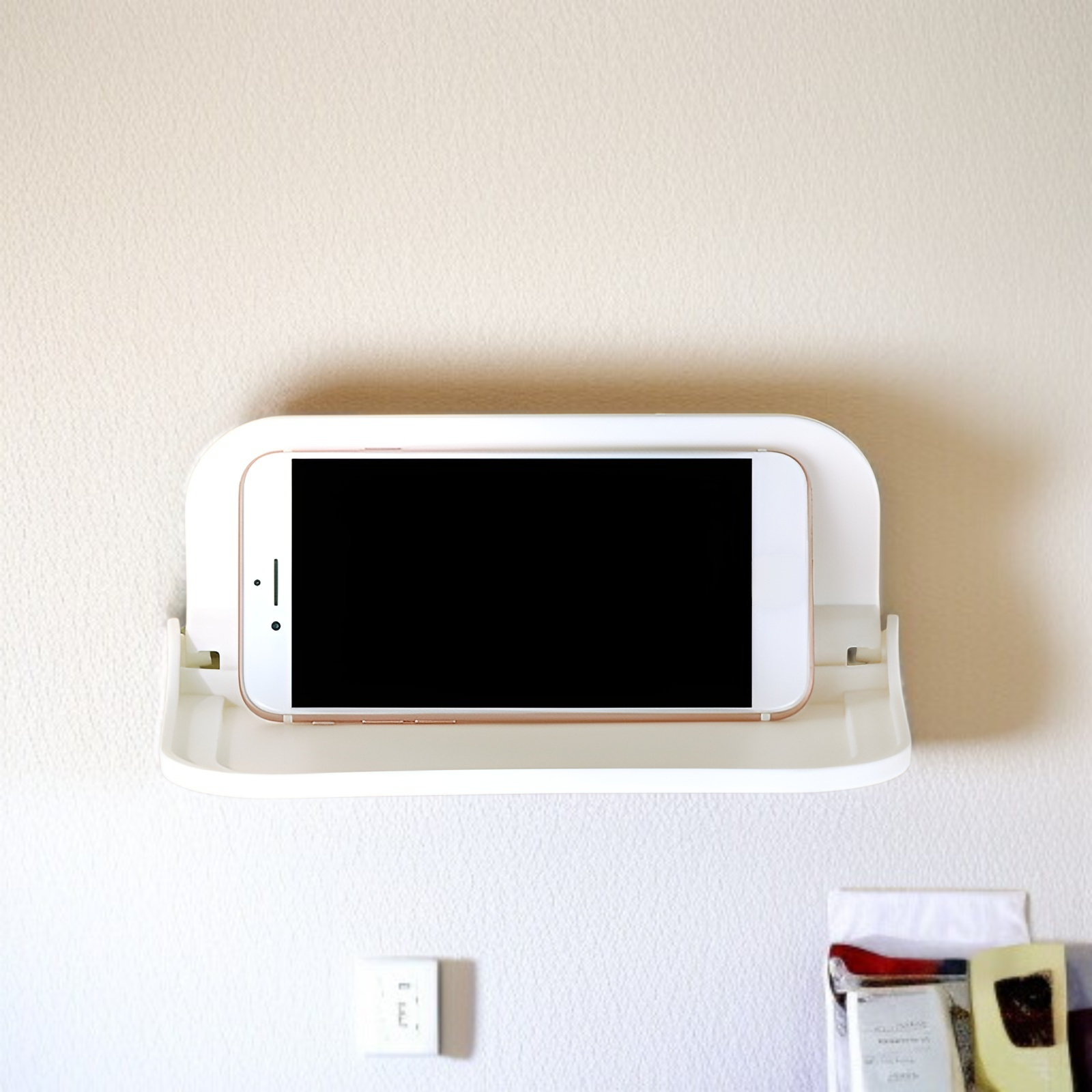 ● 壁掛け式設計で、省スペースを実現。狭いベッドサイドや浴室・トイレでもスッキリ収納でき、部屋を広く使えます。